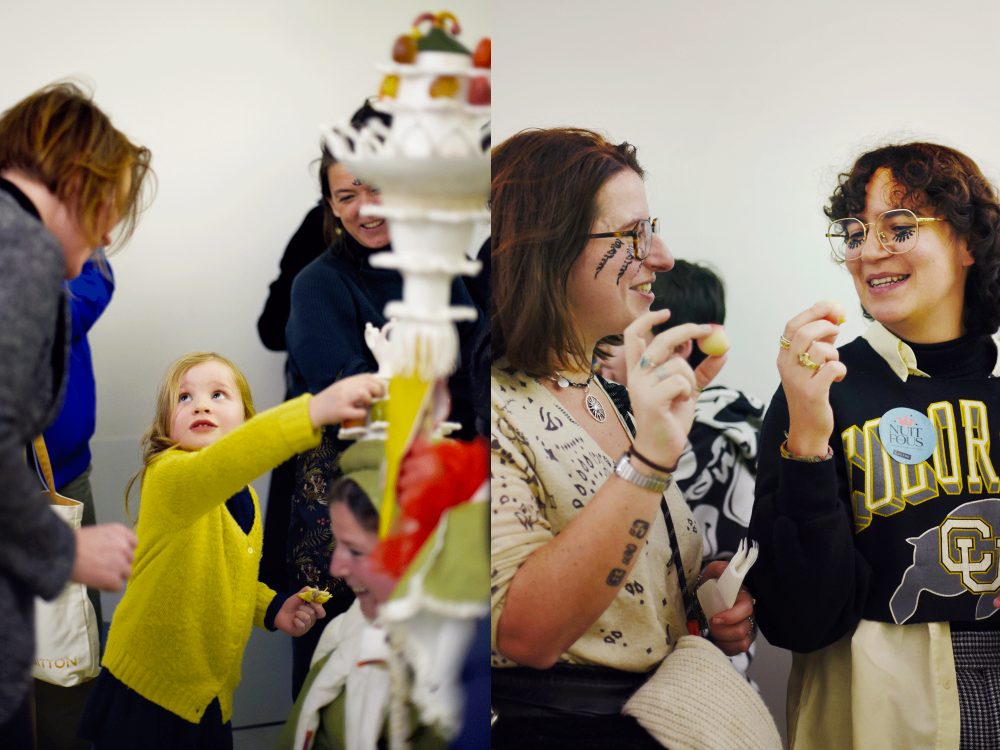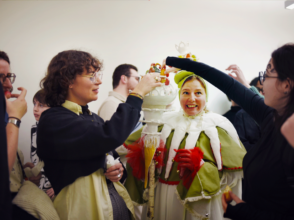 Performance culinaire pour la Nuit des fous au Louvre qui met en scène et en saveurs le banquet médiévial et les figures du fou. Les spectateurs déambulent autour d’un grand buffet en forme de «U» et dégustent 3 mets, présentés et mis en scène par les performeurs/serveurs.