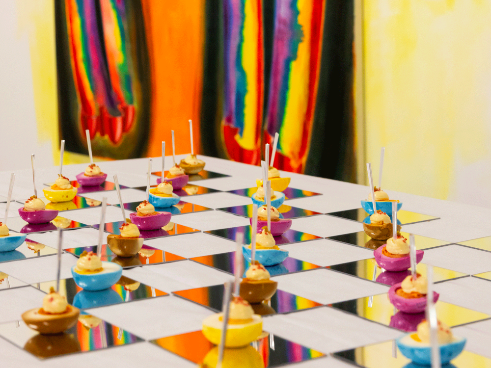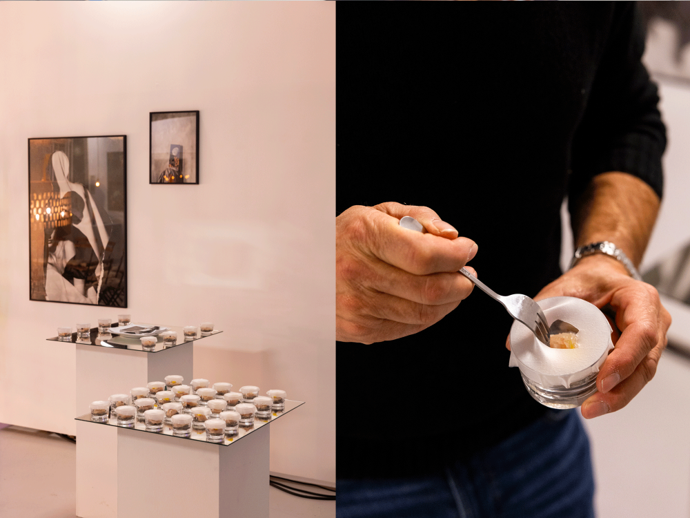 Cette expérience propose de faire dialoguer les œuvres et les mets, autour de créations culinaires et d’une scénographie imaginées par Hoplastudio & Quentin Chevenet en cuisine .