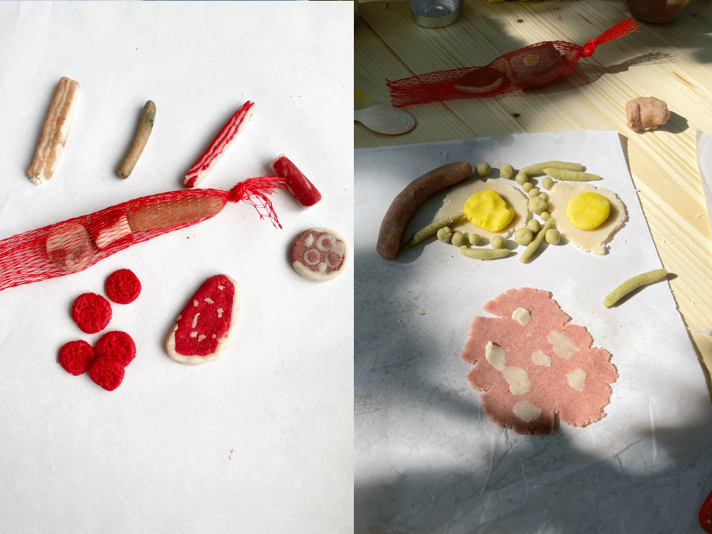 La petite charcuterie de mille-formes est un dispositif d’ateliers culinaires autour de la notion du trompe l’œil. Ici, pas de cochon ni même de gélatine, on apprend à confectionner des confiseries en pâte d’amande fabriquée, colorée et modelée maison pour imiter tous les produits que l’on retrouve dans les vitrines des meilleurs artisans charcutiers : saucisses, saucissons, lardons, boudins, jambons et même petits pois… car oui, laissez vous porter par l’expression « Dans l’imagination, tout est bon »