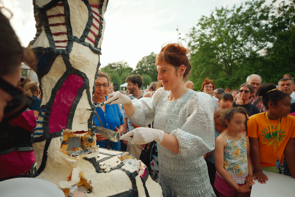 Pour les 20 ans du MAC VAL, nous avons concocté un gâteau-sculpture hors norme. Une pièce montée , réplique de "Chaufferie avec cheminée" la plus haute sculpture polychrome de Dubuffet jamais installée et édifiée devant le musée en 1996.