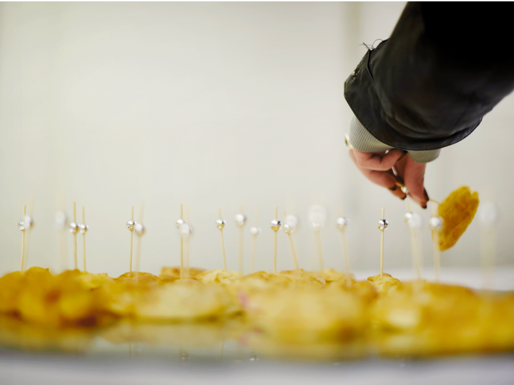 Un serveur-fou jongle avec des petits choux salés.