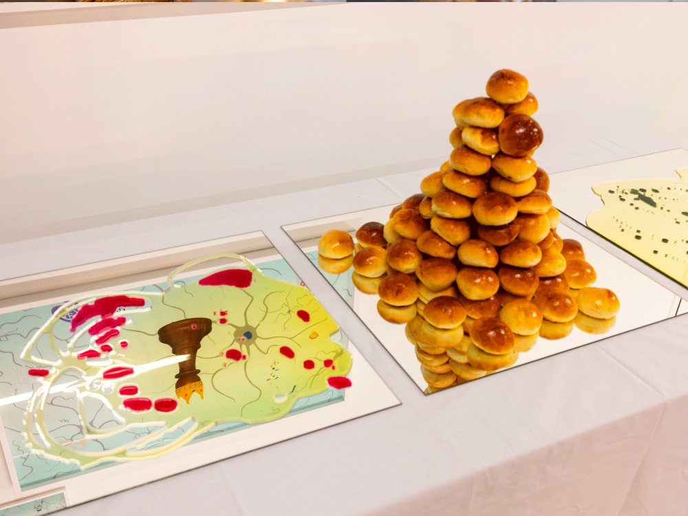 Cette expérience propose de faire dialoguer les œuvres et les mets, autour de créations culinaires et d’une scénographie imaginées par Hoplastudio & Quentin Chevenet en cuisine .