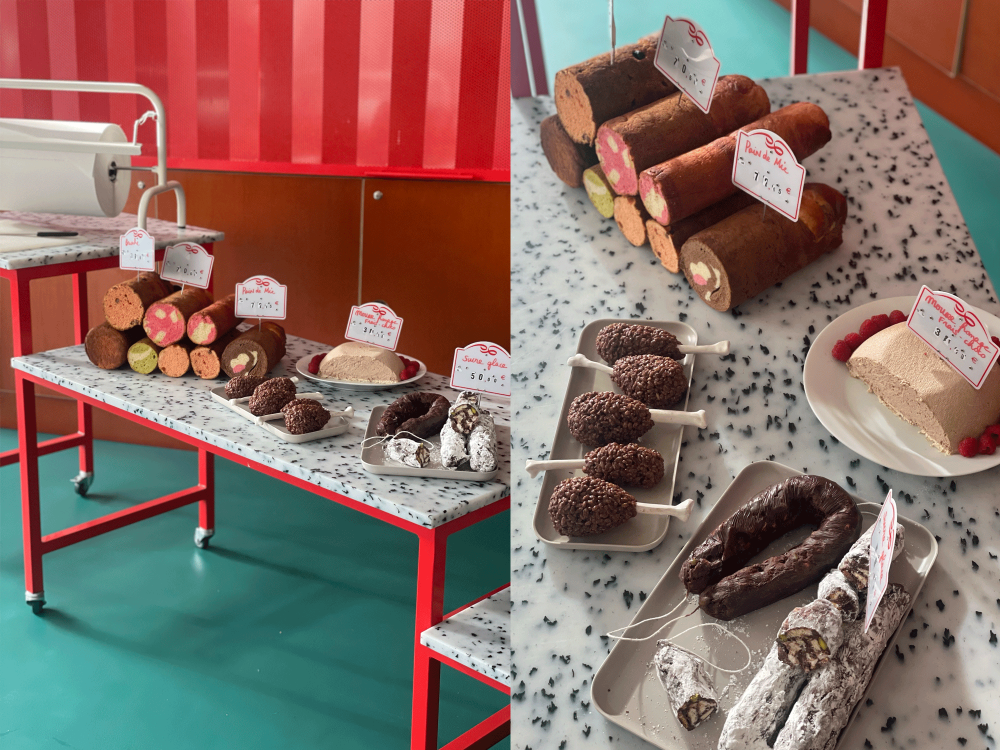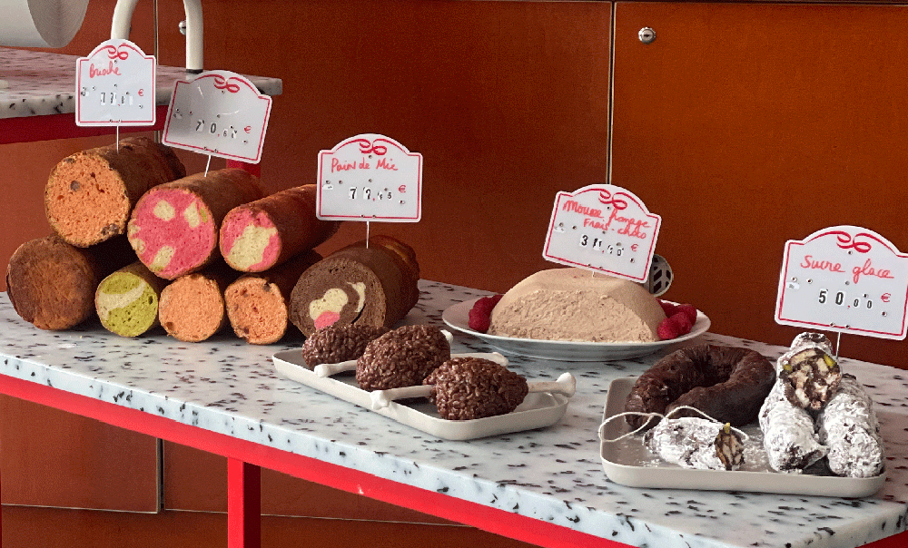 La petite charcuterie de mille-formes est un dispositif d’ateliers culinaires autour de la notion du trompe l’œil. Ici, pas de cochon ni même de gélatine, on apprend à confectionner des confiseries en pâte d’amande fabriquée, colorée et modelée maison pour imiter tous les produits que l’on retrouve dans les vitrines des meilleurs artisans charcutiers : saucisses, saucissons, lardons, boudins, jambons et même petits pois… car oui, laissez vous porter par l’expression « Dans l’imagination, tout est bon »